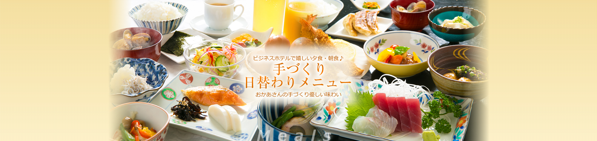 他のビジネスホテルではあまりない、おかあさんの手作り、夕・朝食は日替わりでメニューが変わります。